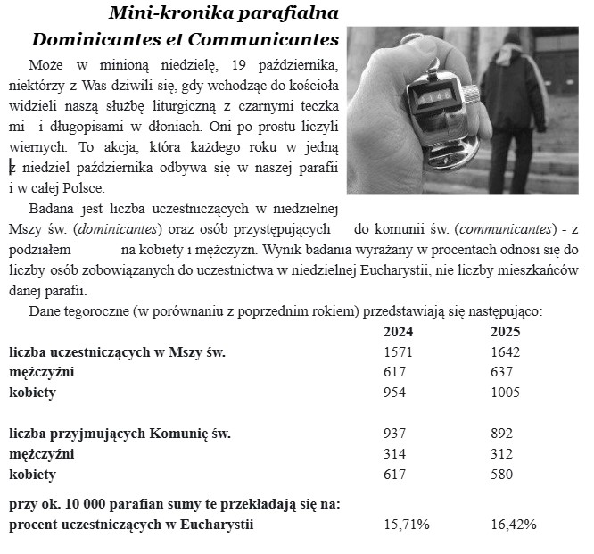 Bóg zapłać serdecznie za posprzątanie kościoła, dekoracje kwietne, ofiary na misje oraz na funkcjonowanie parafii i Domu Pomocy „Samarytanin”.